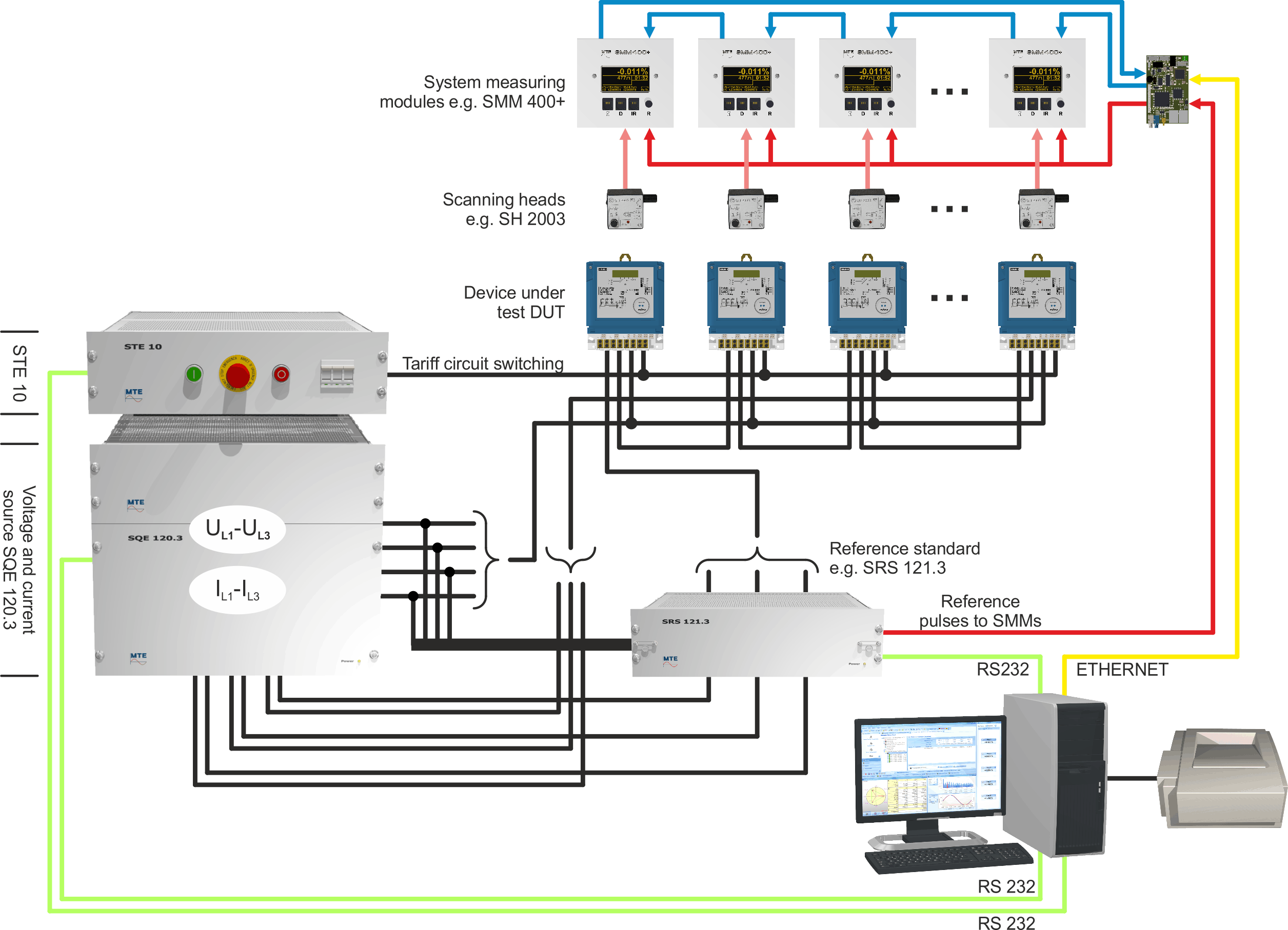 The SQE 120.3 is especially appropriate for test laboratories to perform compliance, acceptance or type test of electricity meters and different types of power, energy and power quality measurement devices, following the existing (IEC 61000-4-30, EN 50160) and the new (IEC 62586-1,2) power quality standards.